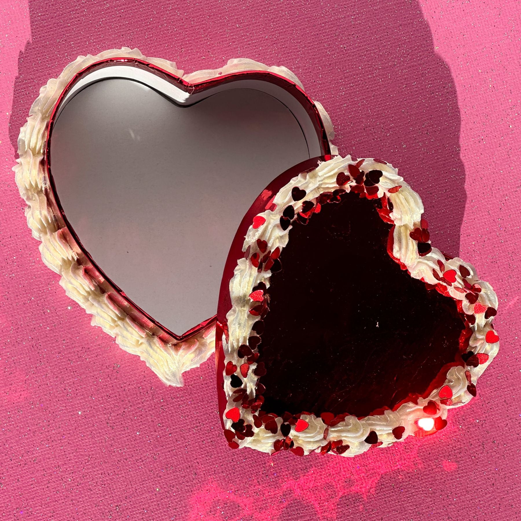 3D Painted Cake - Heart Box Red Metallic With Pearl "Frosting" and Red Heart Glitter