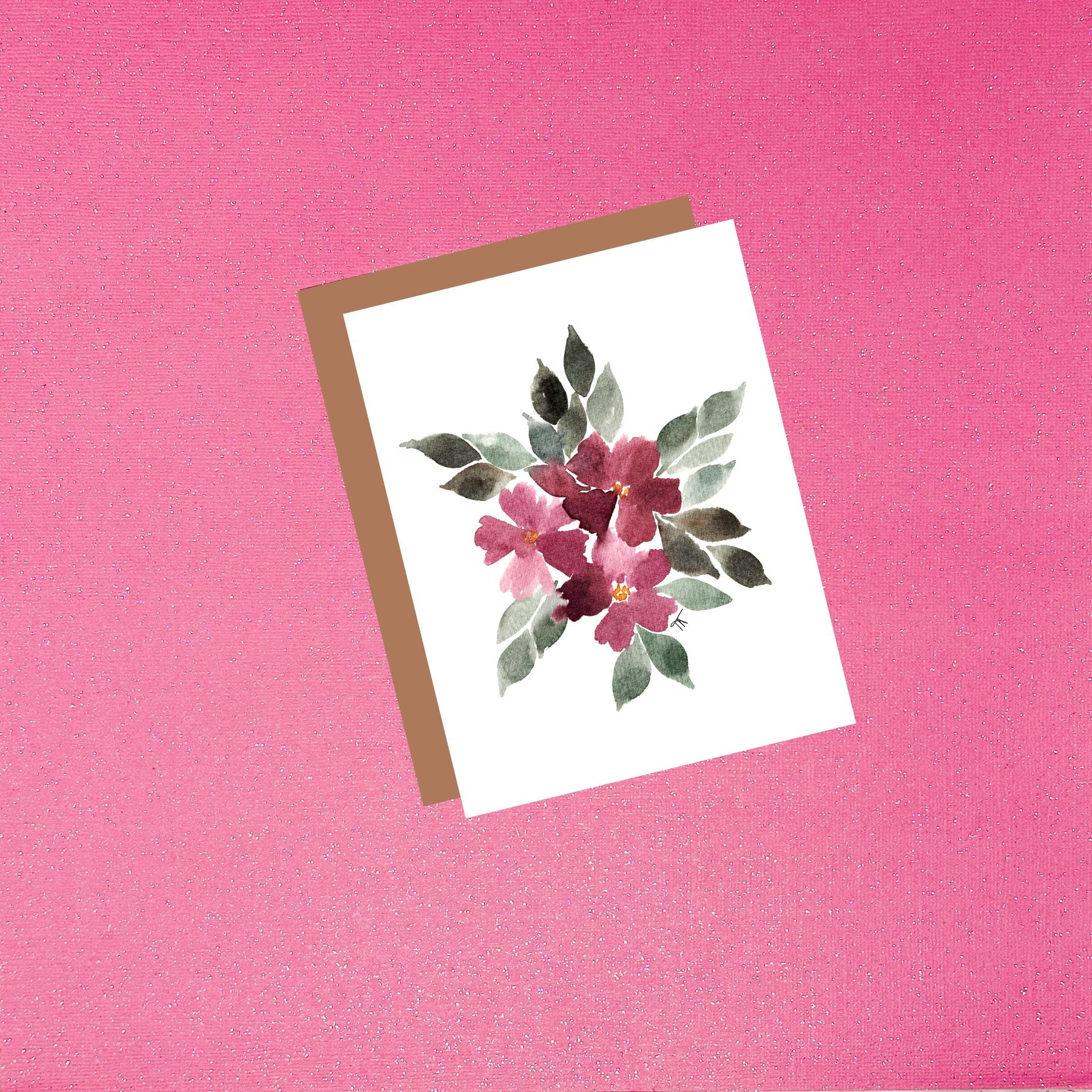 Burgundy small bouquet - Watercolor Flower Greeting Card