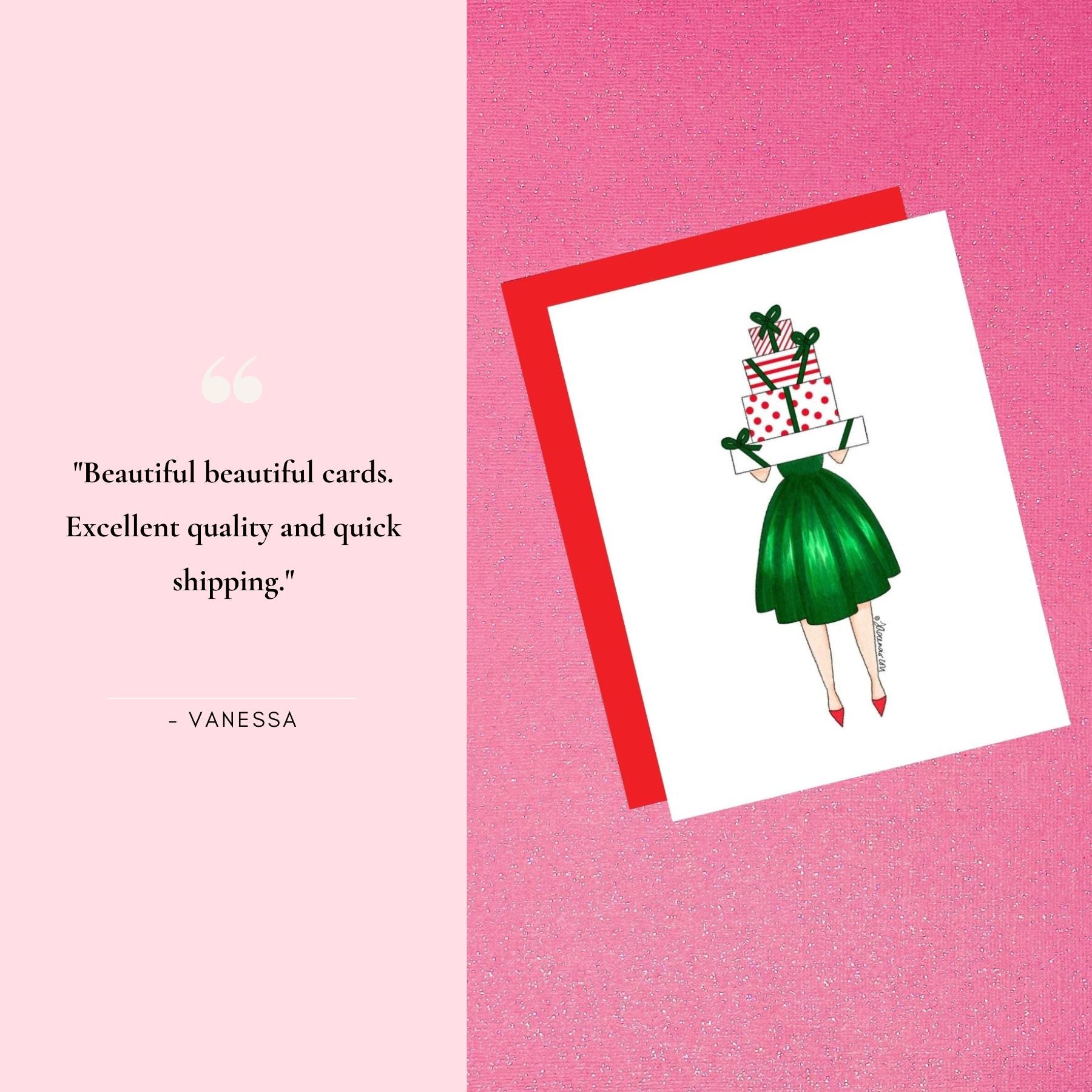 Spread some holiday cheer with this festive "Making Spirits Bright" card! Featuring a hand-painted watercolor design of a martini glass topped with a Santa hat, this card is perfect for anyone who loves cocktails and holiday humor.