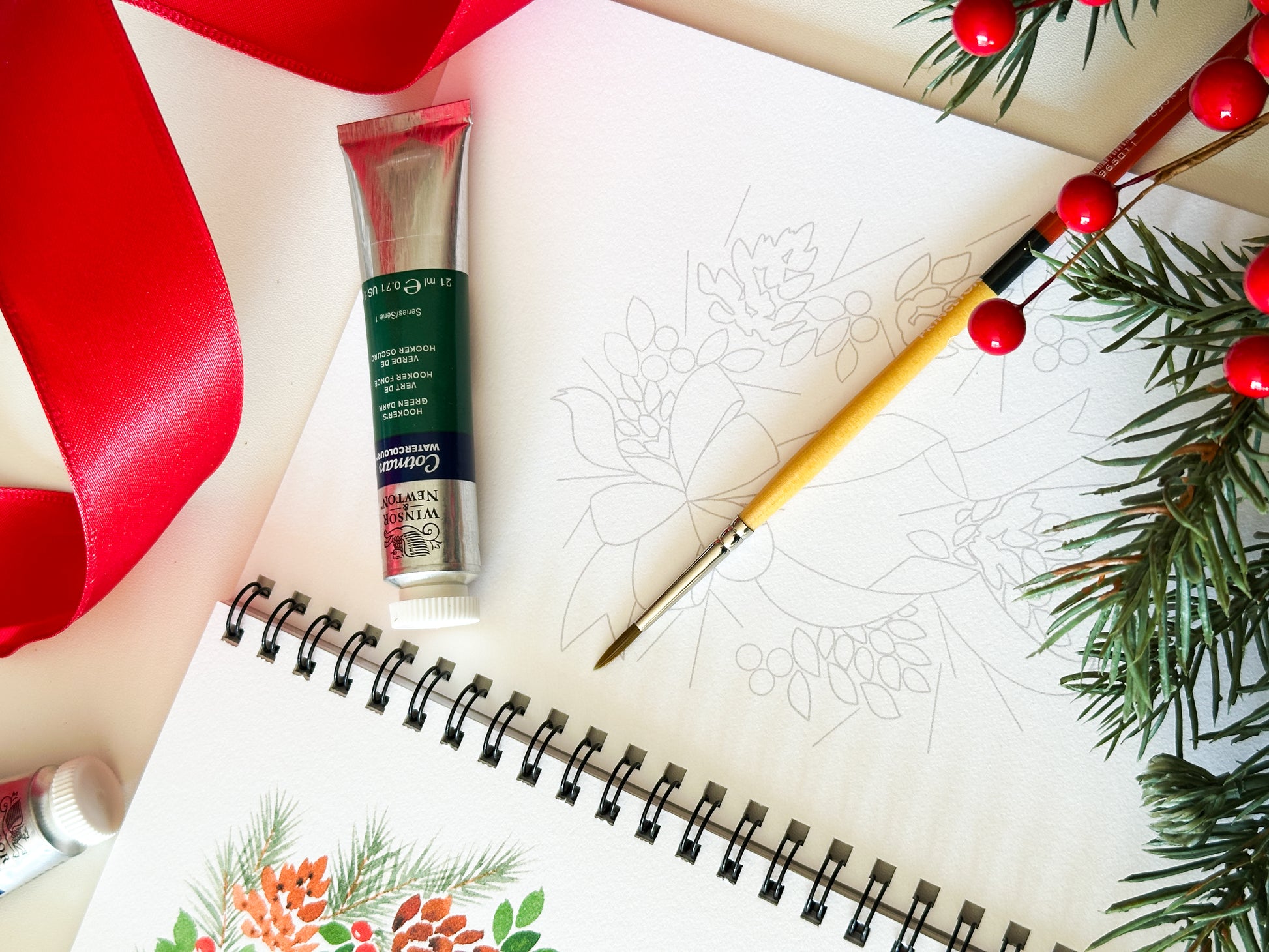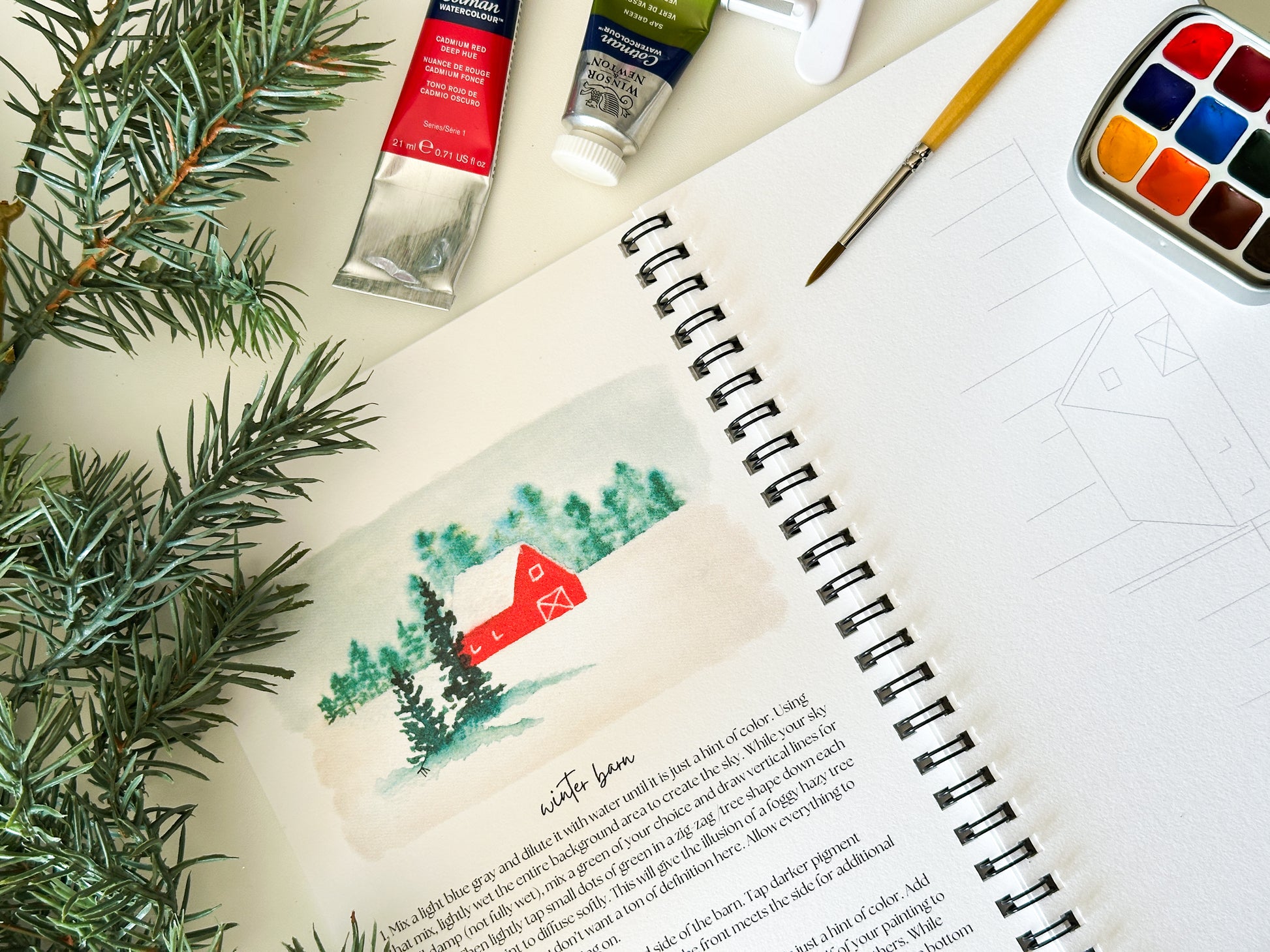 Watercolor Holiday Workbook for Beginners - DIY Paintable Holiday Sketchbook